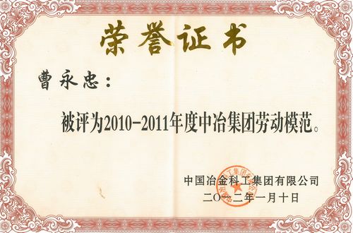 日前,从中冶集团劳动模范表彰大会上获悉,公司总经理助理、水泥工程技术公司经理曹永忠荣获2010—2011年度“中冶集团劳动模范”荣誉称号。