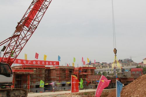 当天上午,施工现场彩旗招展,“热烈祝贺首批装配式住宅吊装取得圆满成功”的大红挂幅格外醒目,来自中冶置业(安徽)公司、物流与装备成套公司、工程技术服务公司和有关项目的负责人、吊装及相关人员汇集现场,翘首以待新产业启动仪式的到来。9时28分,随着中国十七冶集团总工程师尹万云一声令下,现场鞭炮齐鸣大吊车缓缓吊起第一块叠合楼板,从而拉开了装配式住宅产业化技术在项目上实施的序幕。