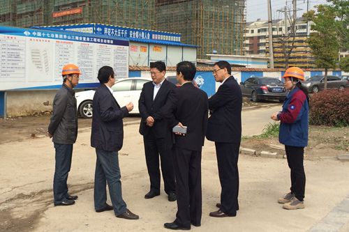 415上午,马鞍山市委副书记、市长魏尧来到中冶置业(安徽)公司承建的马鞍山乔山三期安置房项目施工现场实地察访,调研解决项目建设中存在的困难和问题。市城投集团副总经理张建中,中国十七冶集团公司总工程师、副总经理尹万云,中国十七冶集团总经理助理、中冶置业(安徽)有限公司总经理王振堂参加了察访