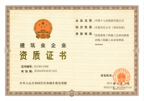 69,中国十七冶集团从国家住建部领到了冶炼工程施工总承包特级和冶金行业甲级设计资质证书。至此,公司继20145月份获得房屋建筑工程施工总承包特级和建筑行业甲级设计资质后,成为安徽省首批“双特双甲”资质建筑企业,这对公司实现持续健康较快发展具有历史性意义。