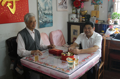 最后,喻世功董事长来到了抗战老战士刘亚辉家,刘老现已有90岁高龄。喻世功董事长仔细询问他身体的恢复情况,并表示,刘老是国家的功臣,感谢他为国家和十七冶的建设发展付出的辛勤劳动和艰苦努力,希望老人家注意饮食起居,保护好身体。