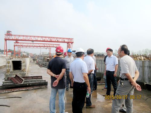 97,湖南省株洲市交通局副局长张勇一行来到中国十七冶集团路桥工程技术公司承建的株洲市湘江大道一期工程调研指导工作,株洲市质安处及交发集团主要领导一同参加调研。