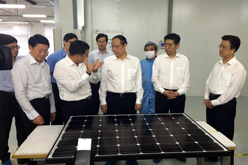 在市经济技术开发区茂迪新能源有限公司,王学军走进十七冶建设完工的400兆瓦模组生产车间,仔细察看生产线,详细了解生产运行、科技创新、产品销售等情况。得知项目从签约到正式投产仅用了3个多月时间,创造了令人惊讶的“马鞍山速度”时,王学军给予了充分肯定,勉励企业瞄准市场前沿,强化创新驱动,加快发展步伐,不断做大做强。