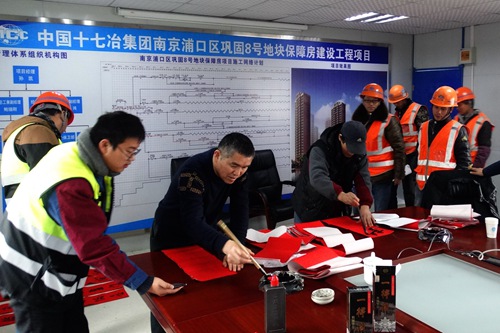 117上午,中国十七冶集团工会联合市工人文化宫组织市知名书法家到十七冶城建工程技术公司南京浦口区巩固8号地块保障房项目部进行春节前慰问活动,免费现场为一线员工书写、赠送春联。