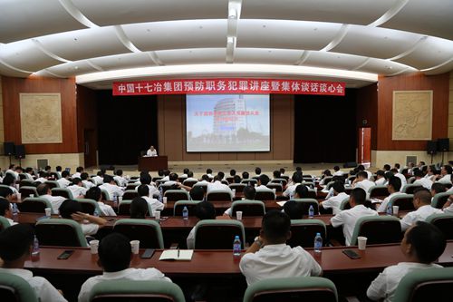 7月15日下午,中国十七冶集团在总部报告厅组织开展预防职务犯罪专题讲座暨集体谈话谈心会。公司领导班子成员、总经理助理、副三总师、总部机关负责人、二级单位领导班子成员、区域公司经理、书记,国内项目的中层项目经理等约200人参加了会议。公司党委书记、董事长喻世功主持会议并作了题为《世间没有后悔药,却可以找到预防针》的集体廉政谈话。