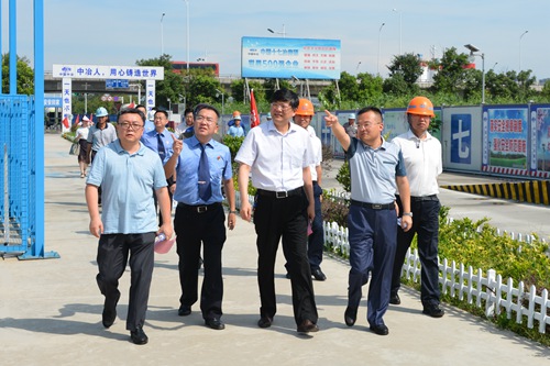 范群检察长一行到施工现场,详细了解工程的进展情况,听取了关于项目概况和形象进度的介绍。范群检察长对目前的工程进展十分满意,并要求项目部要保持安全文明施工的良好态势,落实好高温天气安全文明施工的各项措施,务必做好现场的防暑降温工作,维护好施工现场的人员、设备安全。