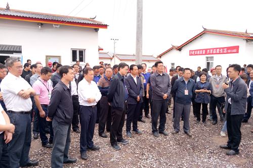 林书成书记一行在越西县县委书记袁洪的陪同下先后到大花乡三峡新村、瓦曲觉乡尔口村二个住房集中示范点现场查看。林书成书记认真查看了安置点施工的整体建设情况,并听取了关于项目整体推进情况的工作汇报,全面了解项目的实际情况,对项目的施工进度、工程质量给予了充分的肯定,对十七冶的央企作风及对该项目的扶持力度表示了高度的赞扬。