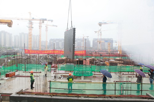 9月30日,随着一块2.99米×2.95米,重达4.42吨的钢筋混凝土预制构件(PC构件)缓缓吊起,在14#楼一层准确就位,南京江宁澜悦方山居项目PC构件首吊成功,中国十七冶集团在住宅产业化建设上又迈出了新的一步。