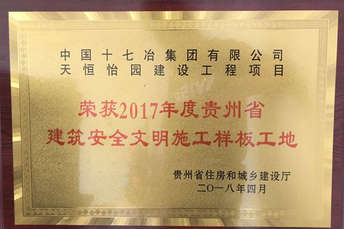 5月23日,由中国十七冶集团有限公司城建工程技术分公司承建的贵州天恒怡园工程项目荣获“2017年贵州建筑安全文明施工样板工地”、“2017年贵州省建筑工程优质质量结构工程杯”双优奖项。5月24日,业主单位贵州天恒房地产开发有限公司特致信表扬。