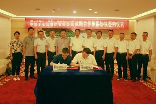 8月13日,中国十七冶集团与遵义市地产(集团)在十七冶总部签订战略合作框架协议,在遵义市地产(集团)党委书记、董事长朱俊昌和中国十七冶集团党委书记、董事长喻世功的共同见证下,遵义市地产(集团)党委副书记、总经理袁静和十七冶城建工程技术分公司经理杨有谊分别代表双方在协议上签字。
