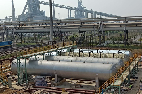 本次蓄热器系统的提前投用,是本技改工程中的里程碑节点,共4台蓄热器,容积为150立方米,单台重123吨,直径3.12米,长度22.656米。项目部充分发挥炼钢精炼“国家队”的优势和实力,提前策划,精心组织,克服了设备到货迟、生产施工相互交叉、施工环境恶劣、生产协调难等一系列困难,加班加点,在管道吹扫、打压、蒸汽远程输送等关键节点上24小时挂图作业,最终圆满完成施工任务,比原定工期整整提前了三个月,为后续任务和三号高炉系统工程施工奠定了坚实的基础。