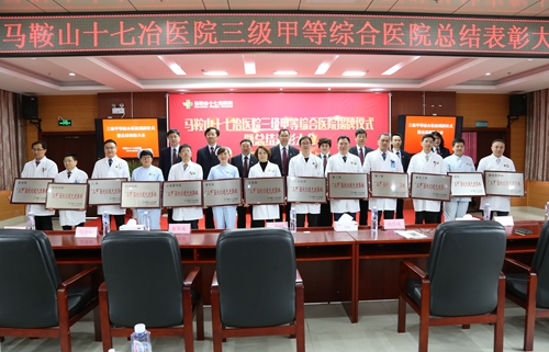 328日上午,十七冶医院举行三级甲等综合医院揭牌仪式暨总结表彰大会。马鞍山市副市长杨善斌,中国十七冶集团董事长、党委书记喻世功共同为马鞍山十七冶医院三级甲等综合医院揭牌。马鞍山市卫健委党委委员、副主任邓国支宣读了安徽省卫健委关于马鞍山十七冶医院三级甲等综合医院的批复。