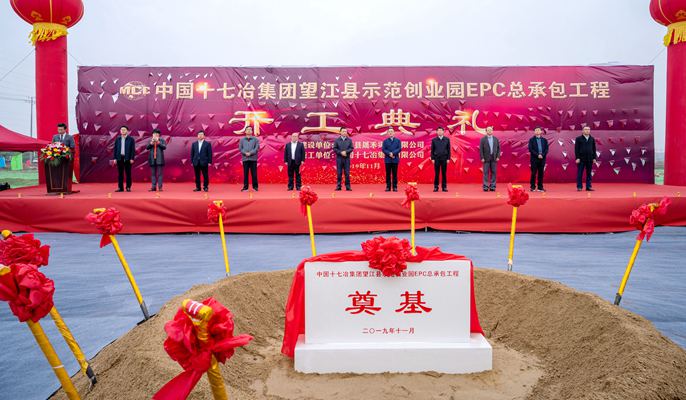 1113日上午,中国十七冶集团承建的安徽望江县示范创业园EPC总承包工程举行开工仪式。望江县委书记李跃云,县委副书记、县长霍辉,县人大常委会主任汪洁,县政协主席钱和森,县委常委、常务副县长陈宏,中国十七冶集团副总经理曹永忠,总经理助理钟华彪等参加了开工仪式。