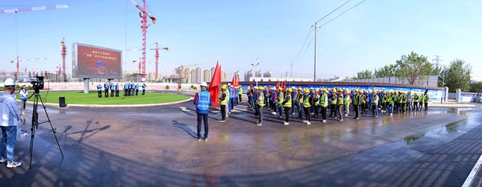 在施工现场展示阶段,媒体记者通过视频直播观摩了现场土建工程与钢结构工程交叉作业的互动画面,多架无人机在指定区域有序进行俯瞰录影,第一时间传送录播画面,展现了项目部“大干一百天”的壮观画面。