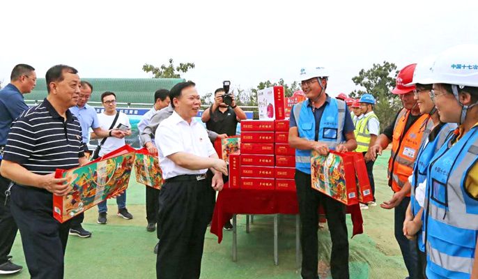 双节临近,刘南昌书记为一线施工人员送上节日的问候,对大家舍小家为大家、克服疫情和降雨影响,争分夺秒、加班加点做好项目建设工作表示衷心感谢,并希望在项目建设的最后关头咬紧牙关、顽强拼搏、攻坚克难,确保项目建设早日圆满收官。