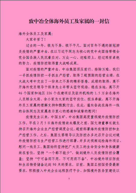 致中冶全体海外员工及家属的一封信