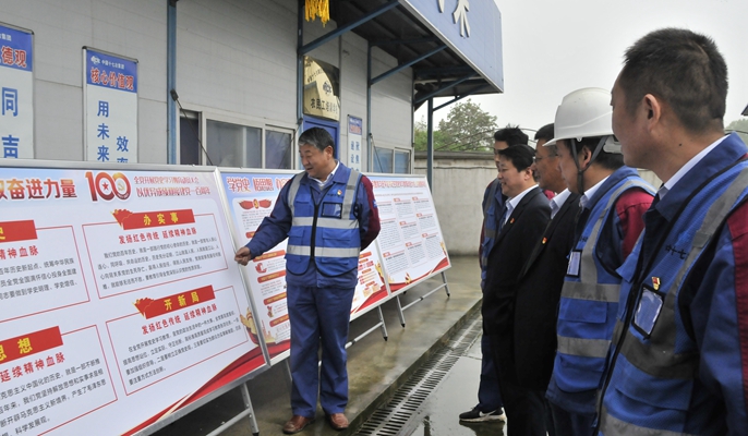 项目经理结合项目视频,就项目建设概况、物资供应、工程质量管控、安全环保管理、过程工序管控、科技创新及新技术应用等进行了解,彰显项目建设中精细化、技术化、安全化管理水平。同时项目党支部通过展板、照片等重点介绍项目在当地践行央企社会责任、党建工作开展等情况。党支部将继续充分发挥战斗堡垒作用和党员的先锋模范作用,传递红色能量,将“遵义会议精神”落到实处,全力冲刺赶工期,展现党员干部“干在实处、走在前列”风采。