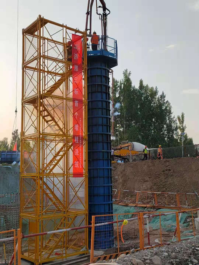 济南至潍坊高速公路是山东省“九纵五横一环七射多连”高速公路网中“射三”线,西接京沪高速济南至莱芜段,东接潍日高速,项目全长162千米,设计时速120千米。中国十七冶集团承接K41+500—K49+470段,共7.97千米,主要施工内容包含路基工程、路面工程、桥涵工程(大桥4座、中桥1座、通道桥7座、互通立交2处、分离立交3处)、排水工程、防护工程等。此次浇筑的范阳河中桥左幅1-0墩柱设计墩高10.845米,设计方量为16.7立方米。