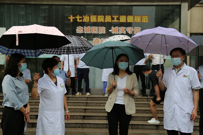 8月16日下午,马鞍山副市长阚青鹤到十七冶医院督查疫情防控与安全生产工作。马鞍山市卫健委主任杨荣明、雨山区政府相关负责人,十七冶医院董事长王仲恺,党委书记陈斯菊参加检查。