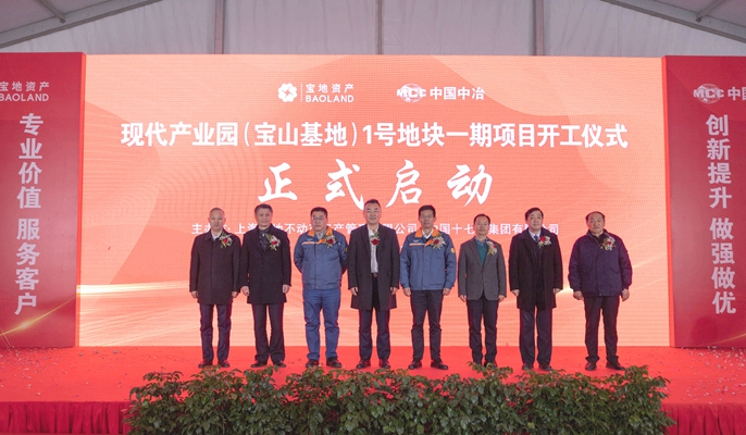12月28日上午,中国十七冶集团上海分公司承建的上海现代产业园(宝山基地)1号地块一期项目正式开工。上海宝地资产管理有限公司总裁王语,宝山钢铁股份有限公司投资管理部部长陈声鹤、设备部部长陶树贵,上海宝地资产管理有限公司高级副总裁范宏超,宝山区友谊路街道办副主任林必德,宝钢工程技术集团副总经理李晓庆,宝钢工程咨询有限公司总经理孟凡东,中国十七冶集团总经理、党委副书记刘安义出席。