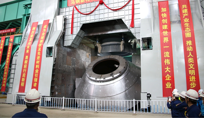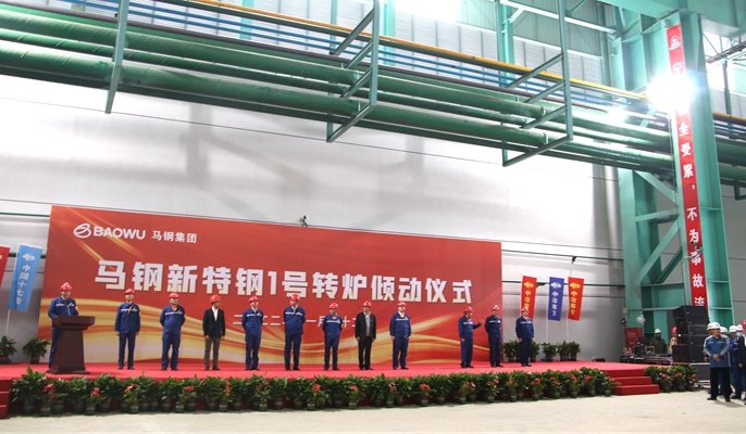 马钢新特钢炼钢及精炼项目设计年产钢320万吨、钢坯315万吨,其中中棒100万吨、线材及大盘卷115万吨。工程于2021年11月18日开工,分两期建设,以实现优特钢技术、品牌、效率、规模、智慧、绿色六大引领为目标,着力建设质量第一、极致高效、成本最优、环境友好的最具竞争力的现代化优特钢精品基地。自2022年8月26日转炉就位以来,在两级公司的全力支持下,项目部精心组织谋划,合理安排工序衔接,倒排工期,挂图作战,顺利推进工程进展。全体项目员工以“一天也不耽误、一天也不懈怠”的企业精神和“24小时工作法”,克服重重困难,顺利完成了1#转炉倾动试车这一重大节点。
