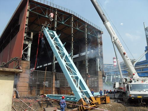梅钢炼钢渣处理落锤区搬迁改造工程,在南京市中华门外新建梅山钢铁股份有限公司内。在该工程中,机电公司主要承担的是在炼钢渣跨厂房向东延长24m,新增一台75/32t铸造桥式起重机、更换现有两台6KV/0.4V1250KVA油浸变压器、进线柜记母连柜、原有刚性滑触线及相应配电箱和进线电缆、原有回路的开关、新增柜体、低压封闭式母线槽,新增低压柜主母线、动力检修箱电源,东延部分照明、防雷接地、管线敷设以及相关公辅设施,加上原有部分原厂房及部分公辅拆除等一系列、行车、电气、管道安装任务。该工程工作量约840万元,合同工期112天。按照工期安排,630日主厂房钢结构安装将全部结束。