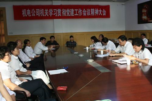 最后,公司党委书记周美初作了讲话。他首先指出:要把机电公司的党建工作切实有效地开展起来,与企业文化紧密结合。机关的党员要起到模范带头作用,促进经营活动的快速发展,为保证今年计划的顺利完成做出贡献!同时,周书记又提出了几点要求:1、希望公司全体员工真诚相处、坦陈相待,在公司党委的领导下,一定要完成各项经济技术指标,为明年的跨越式发展奠定基础;2、机关各部室要结合本次学习,制定出相应的措施,高效率、高质量、高标准以党建工作促进公司跨越式发展!