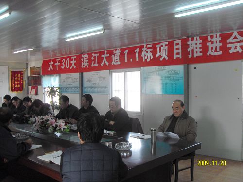 会议由路桥公司副经理、滨江大道1.1标项目经理季学武主持。他强调了四点:一是从项目部到作业队要充分认识到目前工作的艰巨性。该项目主体工程虽已结束,但剩余收尾工程多而杂,对安全质量管理尤为重要,特别是表观质量。二是目前已进入冬季施工,项目部要制定出周密的冬季施工方案,不折不扣地执行。三是项目部、作业队管理人员要针对大干30天的节点计划,24小时连轴转,排好班次,加班加点,按日考核,奖惩兑现。四是加强各项管理工作。在大干抢进度的同时,内部资料的整理也同步跟上。