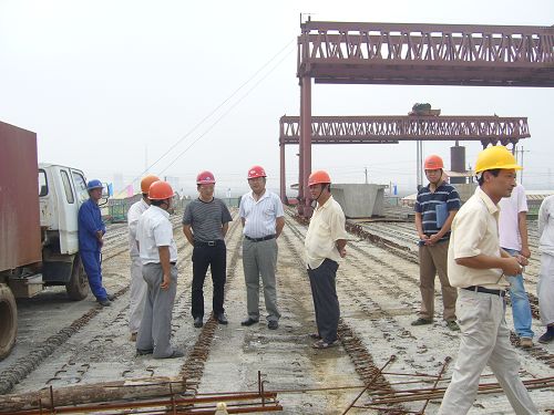 桥面铺装是特大桥最后工序中的关键节点。业主中冶交通将此节点作为考核节点(091231日完成)。项目部领导班子极为重视,多次召开专题会议对施工技术、工艺流程等进行讨论和布置,对方案实施做了大量外部协调工作。在进行摊铺作业时,监理和中冶交通有关人员亲临现场指导工作,并得到了他们认可和好评。十七冶路桥公司经理,党委书记陈阳、常务副经理程大友,亲自参与特大桥桥面摊铺混凝土施工的全过程,并鼓励天津项目部全体员工一定以科学的方法和周密计划,发扬路桥人能征善战的光荣传统,保质、保量、高效安全的完成业主所要求的工期节点。