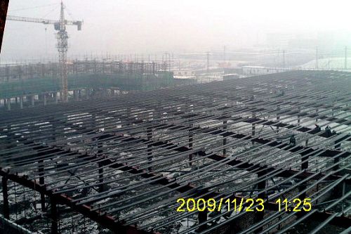 按往年常规,新疆地区11月中旬进入冬季停工状态。但型材项目部急业主之所急,积极创造条件加快工程进展,9个子项有7个处在大干之中,300多人拼搏在型材施工现场,使冰天雪地的建设工地呈现着热烈的劳动景象。在混料楼结构施工中,项目部采取盖彩条布挡雪和酒精喷灯暖化模板内积冰等应急措施,保证了土建结构提前封顶和施工质量。此外,进展较快的原料库钢结构已安装完成95%,砖墙砌筑完成60%;办公楼结构完成80%以上。