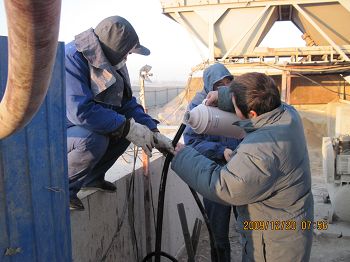 物流与装备成套公司山东搅拌站自今年10月中旬建成以来,积极发挥其要素职能,从商品砼的生产、供应、浇筑等方面为项目做好周到的服务。进入冬季后,寿光的冬天风大气温低,1218~19日这两天达到了–10℃,这种天气给该公司的搅拌站正常生产带来多种困难。水路、气路、阀门冻到打不开,黄砂结成冰块。但项目工期紧,驻项目全体员工切实想用户所想,急用户所急,努力践行“让用户永远感念你”的服务理念,群策群力、团结协作,来保证项目工期需要。他们利用薄毯及建站时剩余的彩瓦为简易机穿衣保暖、挡风;气路、水路不通拆下管子用温水烫通再安装;阀门打不开拆下重新安装。通过这些行之有效的办法,保障了施工现场商品砼的正常生产,确保了项目工期需要。他们吃苦耐劳、善打硬仗、攻坚克难的精神赢得项目部的好评。