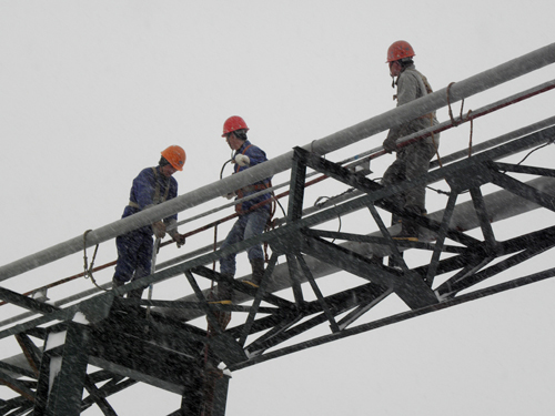 铸铁机外网煤气热水器电缆是业主方根据东北地区的特定气候,新近临时增加的项目,要求十七冶吉钢项目部抢在上冻前安装好。接到任务的电装二处立即组织人员和机具,开始煤气管道支架的敷设安装。8日早晨,尽管天空还在飘着雪花,但是电装二处的员工们,不畏风雪严寒,在确保证安全的前提下,攀登到近十米高的煤气管道支架上进行施工作业,确保了业主方新增项目的顺利完成。