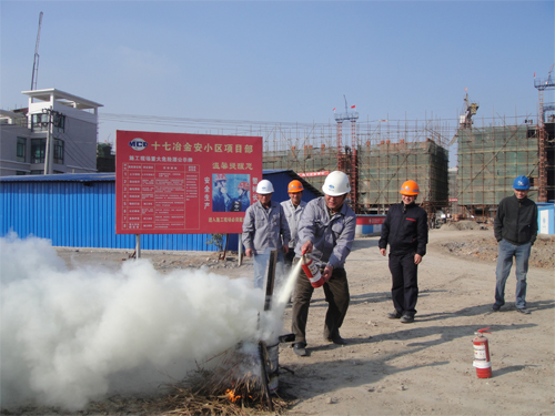 本次活动主要是普及建筑消防安全知识,提高安全管理人员及作业人员的救火救灾、自防自救能力,提高消防安全工作的管理水平,同时项目部领导带领安全管理人员对所建的40多栋楼的消防安全和安全生产情况进行全覆盖、地毯式排查,及时彻底排除安全隐患。1123日下午金安小区项目部开展了建筑工地消防演练活动。通过对灭火器材的使用、实际灭火演练等活动,切实增长安全管理人员及现场作业人员对消防事故处理的相关知识和在突发情况下应急抢险能力,有效锻炼了对消防事故的反应能力和对突发事故的应变能力。