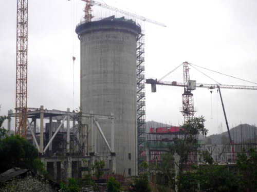 生料库滑模施工是该工程的一关键节点,施工时适逢贵州雨季,该项目部不畏条件艰苦,克服困难,精细组织,在确保质量安全的前提下,冒雨抢抓工期,用了近20天的时间,安全、优质滑模到顶。