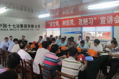 713,由市建管处葛国胜、范方平组成的“讲文明、树新风、改陋习”宣讲团来到映翠花园三期保障性住房项目,对“四城同创”活动的目的等进行宣讲。项目部各施工处管理人员及监理单位、项目部全体人员聆听了宣讲。