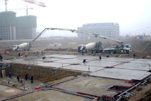 该工程为核心筒框架剪力墙结构,人工挖孔桩基础。228开始,在短短的20天中就完成了桩机施工,实现了318浇筑地下室基础垫层的节点计划。当天下午,地下室一区(分四个区浇筑)15-22/B-G轴已全部浇筑完毕,浇筑面积约1728.6平方米