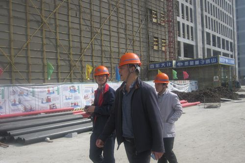 王增时经理先后观看了在建的蚌埠金融中心工程安全通道的搭建、临边及电梯井防护、人货电梯的设置、悬挑脚手架的搭设,以及路面硬化、材料堆砌等情况。他们还就项目管理模式等内容与十七冶项目部的管理人员进行了交流。