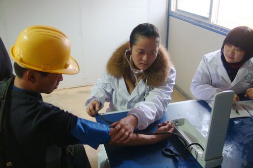 221,水泥工程技术公司江华海螺工程项目部邀请江华县人民医院医生到施工现场,为397名施工人员进行了一次体检,检查项目包括血压测量、心电图检查、心肺及肝脾功能检查等内容。