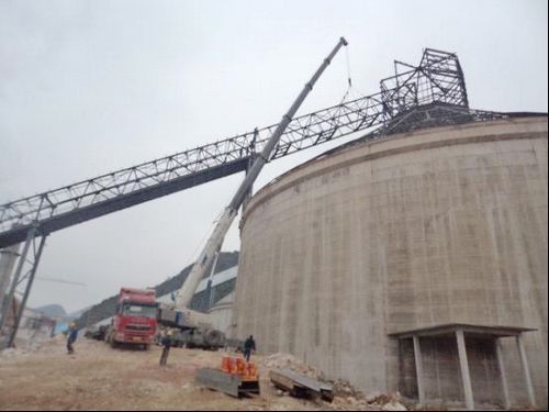 台泥(安顺)二期水泥生产线窑头斜拉链顺利吊装