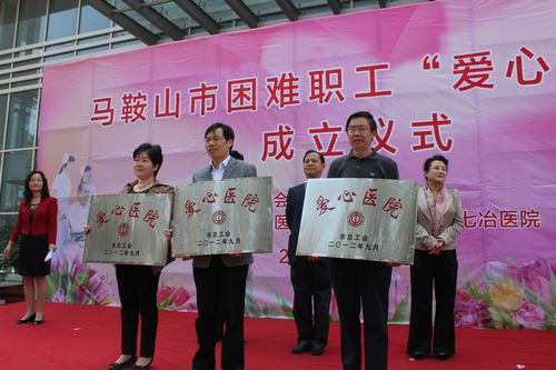 10月19日上午,马鞍山市总工会在人民医院门前广场隆重举行了马鞍山市困难职工“爱心医院”成立仪式。十七冶医院院长王仲恺参加了仪式。 由市总工会发起组织的“爱心医院”主要是为困难职工进行爱心医疗帮扶,全市共有三家,十七冶医院是其中的一家。成立仪式上,市、总工会领导向三家医院授予了“爱心医院”牌匾。