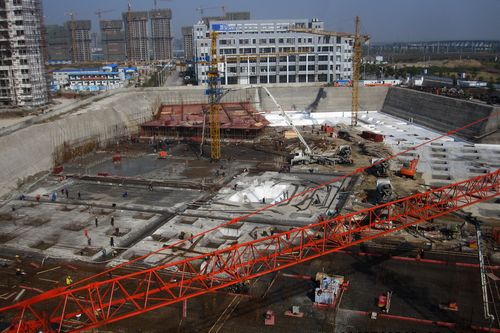 蚌埠大学科技园项目砼浇筑三泵齐发显壮观