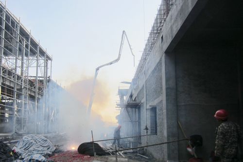 该项目由于外部原因的影响,工期紧,任务重。项目部在施工中,克服各种困难,精心组织、合理安排,充分发扬“高效严谨、精细务实”的企业作风,完成建筑面积6500平方米、混凝土浇筑11000立方米,提前20天完成主体屋面封顶,得到了业主和监理单位的肯定。