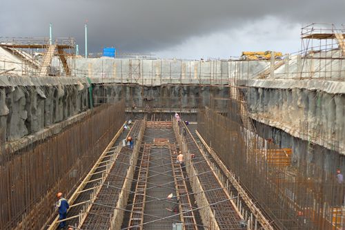 5月4日下午,湛江钢铁炼钢项目2#铁水倒罐坑底板开始混凝土浇筑。