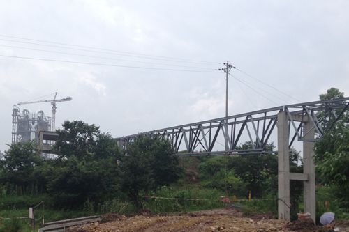 7月3日凌晨,由十七冶水泥工程技术公司承建的梁平海螺4800t/d熟料线建筑工程B标矿山廊道最后两跨钢桁架顺利合拢,实现全线贯通。 重庆梁平地区六至七月属于雷雨多发季节,基本无晴好天气。项目领导克服雨季钢结构施工困难,见缝插针,狠抓生产,十五天内完成了第四段廊道六跨钢桁架的制作、吊装工作。最后两跨钢桁架由于其中一跨跨度36m,重量17t,且穿越天然气管道区域,交叉约19m,整体吊装极为困难。项目领导班子及时改变策略,采取单片吊装、空中组对的方法,顺利实现合拢。至此,矿山廊道全线贯通,标区内最后一个重大节点完成,工程顺利进入收尾阶段。