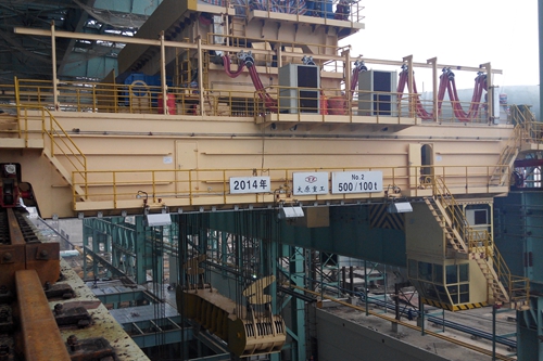 宝钢湛江钢铁炼钢工程首台500/100T行车投入运行