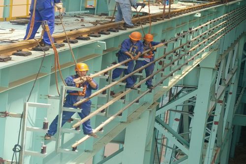 二步加料跨天车滑触线位于炼钢厂房L列6线至14线,南北向总长为206米,滑触线总长824米,固定滑触线支架136付,滑触线供电高压电缆2055米。为了满足二步3#转炉设备进场后的吊装工作,冶金公司精心组织、合理安排,加班加点作业,在确保安全的前提下,提前完成了此项工作任务,为下一步南区设备吊装工作创造了条件。