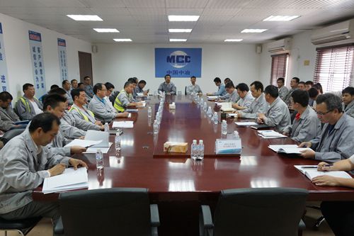 729下午,中东分公司隆重召开了2015年中工作会议,分公司领导班子及科威特大学城项目主管级以上管理人员参加了会议。