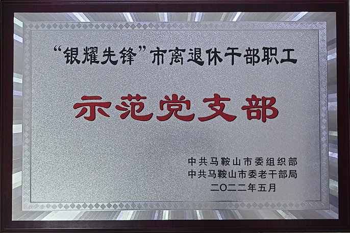 5月30日,在马鞍山市委组织部、老干部局召开“全市离退休干部党支部书记示范培训班”及表彰会上,十七冶离休党支部荣获“银耀先锋”市离退休干部职工示范党支部称号。在表彰会上,市委组织部副部长、老干部局局长陆秋雯,老干部局副局长姚成、市委党校培训部主任葛良学为全市十七个示范党支部颁发了荣誉奖牌。