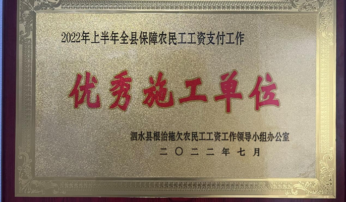 8月19日下午,泗水县召开2022年上半年全县保障农民工工资支付工作总结会议,中国十七冶集团有限公司山东分公司承建的泗水县城投诚园项目在会上荣获“全县保障农民工工资优秀施工单位”荣誉称号,项目负责人郝书龙获“先进个人”荣誉奖励。