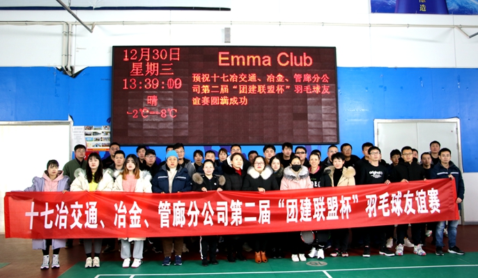12月30日下午,交通、冶金、管廊分公司团委联合举办第二届“团建联盟杯”职工羽毛球友谊赛。冶金分公司党委书记陈鑫慧、交通分公司党委书记王澍、管廊分公司党委书记张赛参加了比赛并开场首发球。